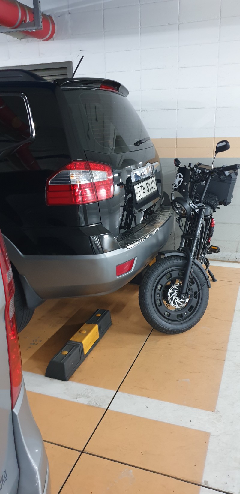 비좁은 주민센터 주차장에 주차했는데, 누구인지 고의로 콕 찍고 도망갔네요.