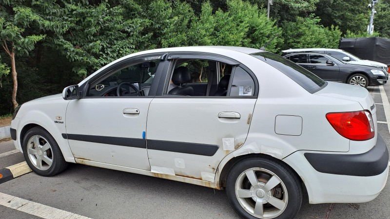 차량상태 : 외부가 녹이 많이 생겨 심한 곳은 테이프로 붙였으며 3년전쯤 브레이크 고장으로 중고로 수리, 에어컨 고장으로 올해 7월에 두번째 중고로 교체